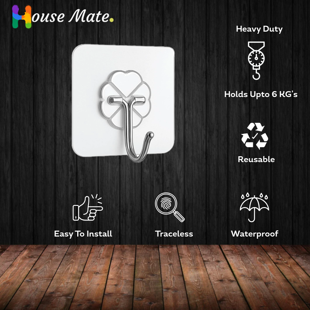 Heavy Duty Self Adhesive Wall Hooks – Transparent, Waterproof, Damage-Free Removable Wall Hangers for Kitchen, Bathroom, Keys, Towels – No Drilling, Strong Hold (Copy)